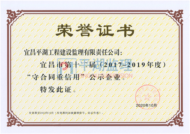 宜昌市第十二屆(2017-2019年度)守合同重信用企業(yè) |