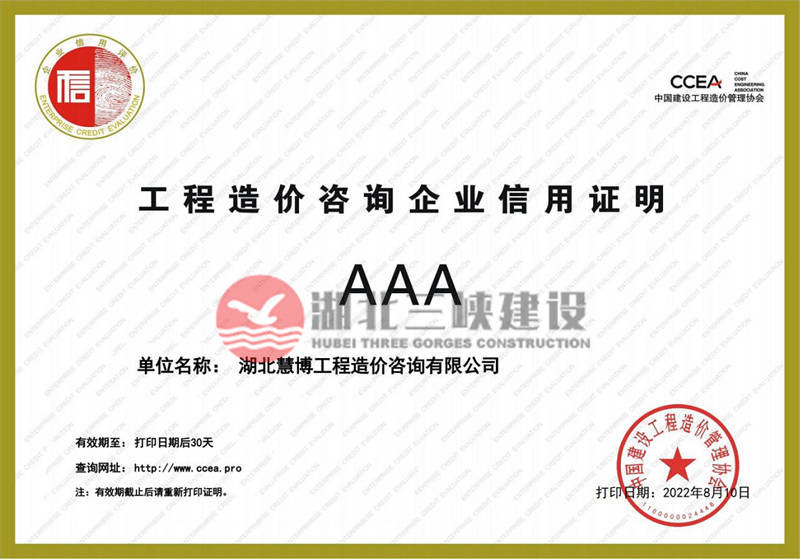 工程造價(jià)咨詢企業(yè)信用證明AAA |