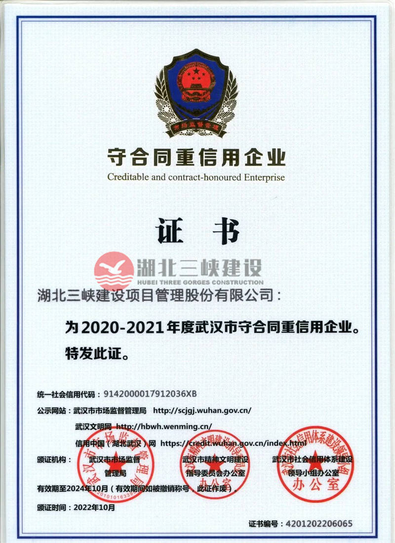 2020-2021年度武漢市守合同重信用企業(yè) |