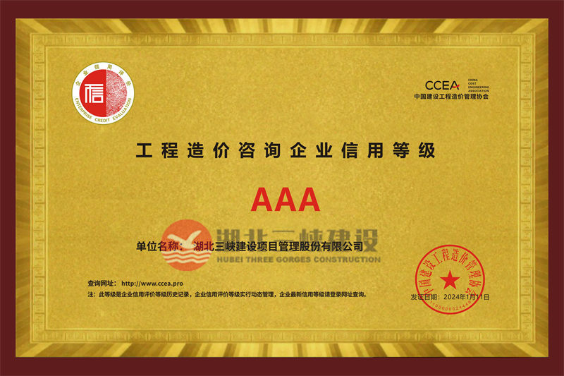 工程造價(jià)咨詢企業(yè)信用等級(jí)AAA |