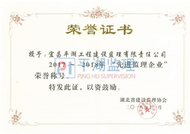 2017-2018年度湖北省先進(jìn)監(jiān)理企業(yè) |