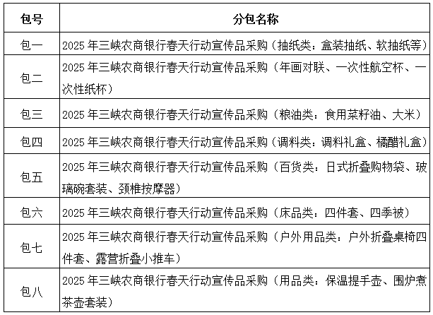 2025年三峽農(nóng)商銀行春天行動宣傳品采購競爭性磋商公告 |