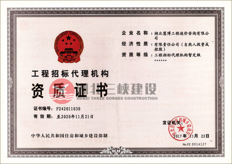 工程招標(biāo)代理機(jī)構(gòu)資質(zhì)證書 |