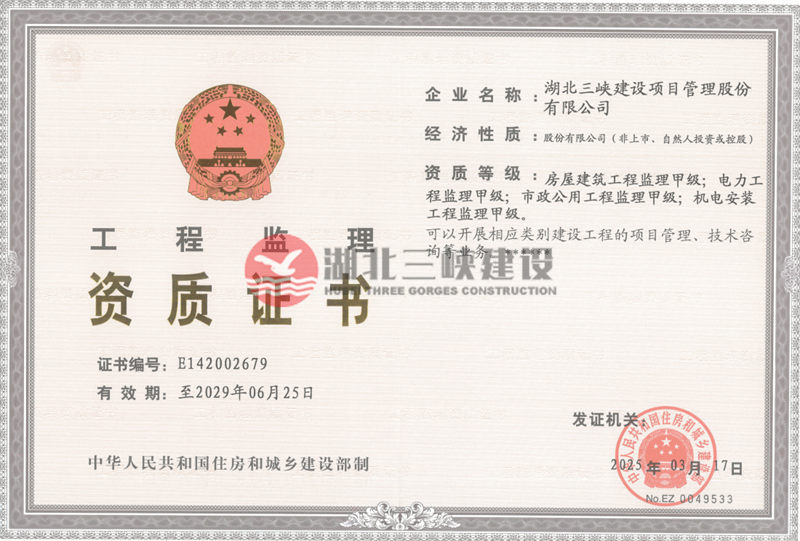 工程監(jiān)理資質(zhì)證書甲級(jí) |