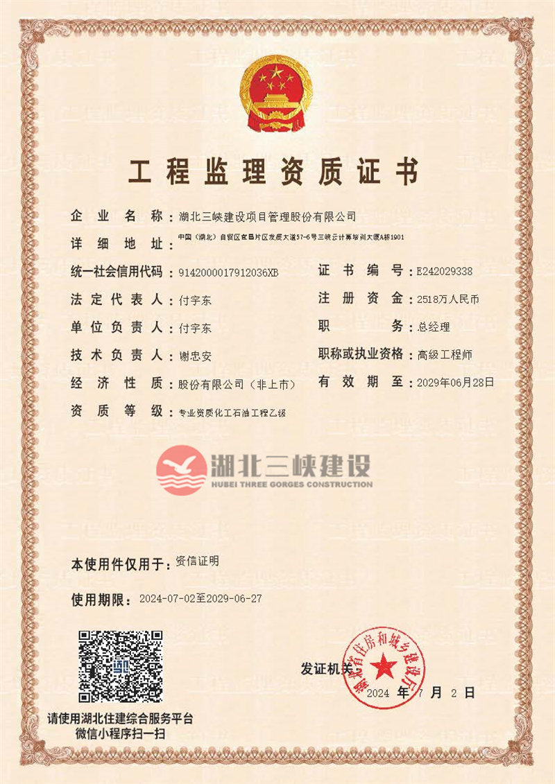 湖北三峽建設(shè)項(xiàng)目管理股份有限公司營業(yè)執(zhí)照