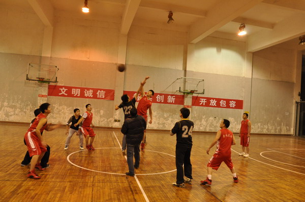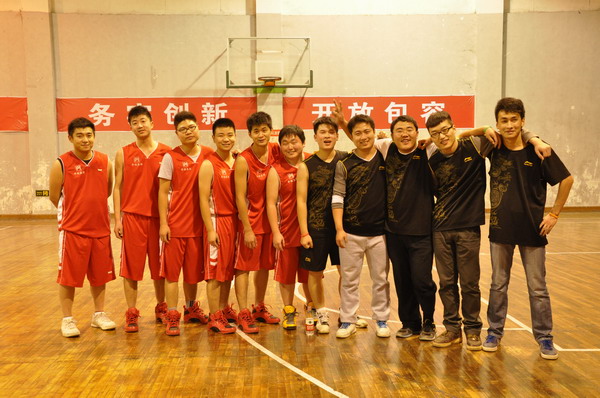 盛總(中)與宜昌平湖工程建設(shè)監(jiān)理有限責(zé)任公司籃球隊合影 比賽現(xiàn)場,揮灑汗水,激情飛揚(yáng)!