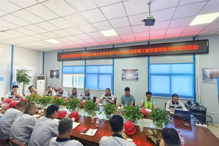 7月20日上午,湖北三峽建設(shè)項(xiàng)目管理股份有限公司2024年度“安全生產(chǎn)月”活動(dòng)總結(jié)暨施工建設(shè)監(jiān)理協(xié)同管理交流活動(dòng),在我公司監(jiān)理的宜昌市公共活動(dòng)中心項(xiàng)目部順利召開。宜昌市城市建設(shè)投資開發(fā)有限公司項(xiàng)目負(fù)責(zé)人郭澤云、中建三局集團(tuán)公司項(xiàng)目經(jīng)理周大游、我公司董事長(zhǎng)盛斌、副總經(jīng)理秦晉江、白全、技術(shù)負(fù)責(zé)人謝忠安、監(jiān)理業(yè)務(wù)總工金愛華及相關(guān)部門負(fù)責(zé)人、公司所屬各項(xiàng)目監(jiān)理部總監(jiān)等共計(jì)30余人參加交流活動(dòng)。