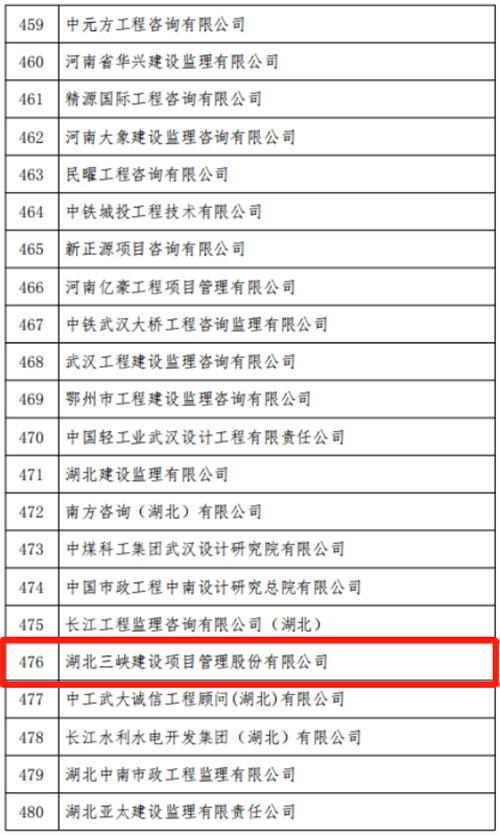 2024年9月30日,在中國建設(shè)監(jiān)理協(xié)會公布的2022-2023年度單位會員信用評價結(jié)果中,湖北三峽建設(shè)項目管理股份有限公司被評為AAA級中國工程監(jiān)理信用企業(yè)。