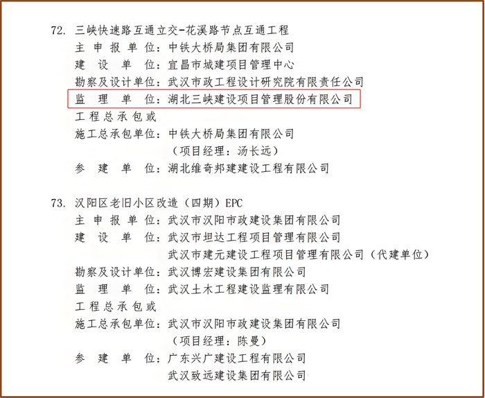 喜報(bào) | 熱烈祝賀我公司監(jiān)理的三峽快速路互通立交-花溪路節(jié)點(diǎn)互通工程順利通過(guò)2025年度全國(guó)市政工程最高質(zhì)量水平評(píng)價(jià)! |